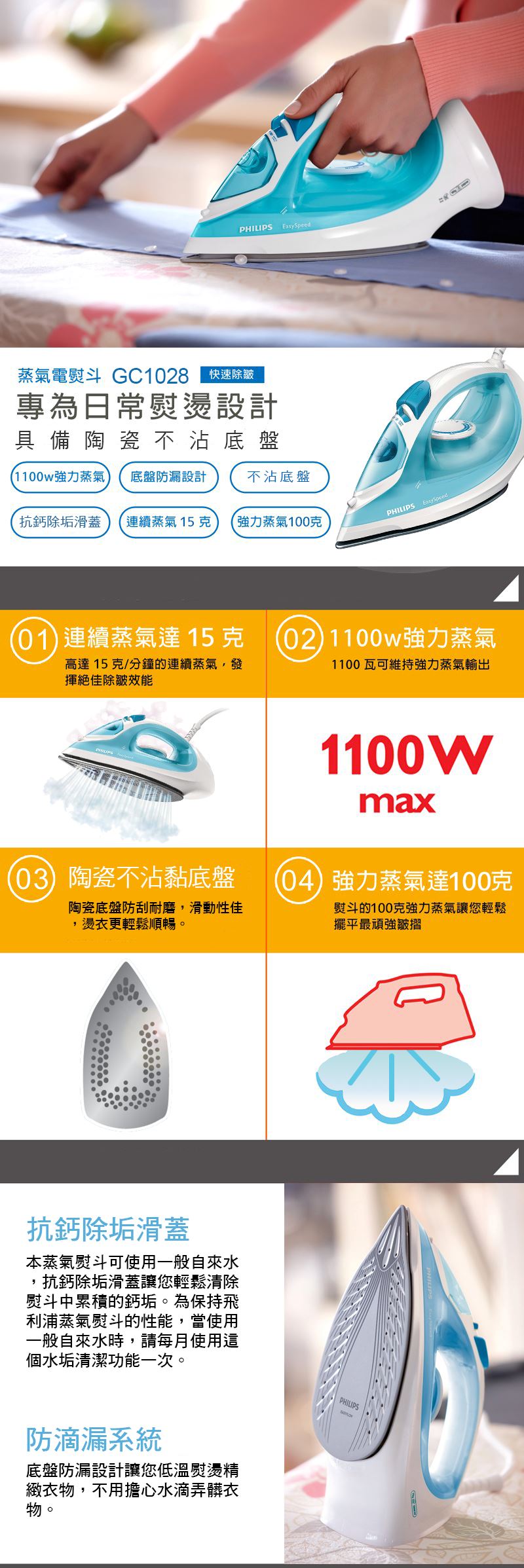 【熱銷產品】【PHILIPS飛利浦】陶瓷不沾黏底盤蒸氣熨斗 GC1028哪裡買便宜詳細介紹如下~你可以參考看看唷
